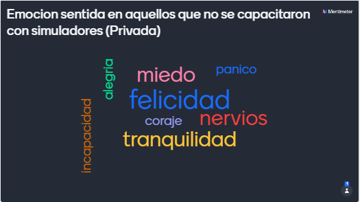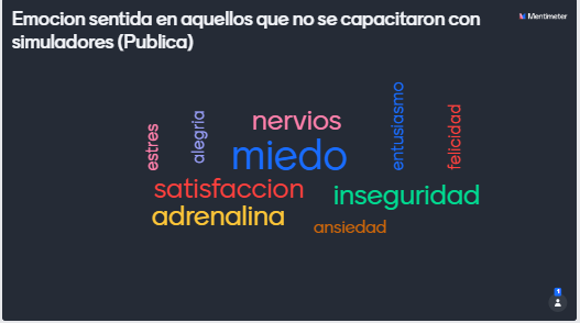 Emocionalmente tanto los capacitados en simuladores de los que no, la emoción más prevalente es el miedo, particularmente en aquellos que se capacitaron con simulación, esto se cree que es debido a que los encuestados saben que están tratando con una persona real y no un maniquí, donde al fallar el procedimiento en el simulador, no tendrían “consecuencia” alguna. Este resultado nos podría estar indicando una falla docente en el uso de la simulación, un escaso uso de los aspectos de inteligencia emocional que deben implementarse en el proceso simulado y llevarnos al planteo de una hipótesis (H1) la simulación en nuestro medio aún no se encuentra adecuadamente insertada en los planes de estudio y una segunda hipótesis (H2) los docentes requieren mayor capacitación.