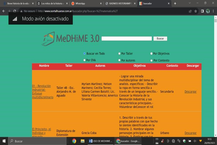 Actualmente MeDHiME se puede apreciar en el repositorio de OVAs www.portalhuarpe.com.ar, cuyo nombre hace homenaje al pueblo originario de San Juan, las huarpes.