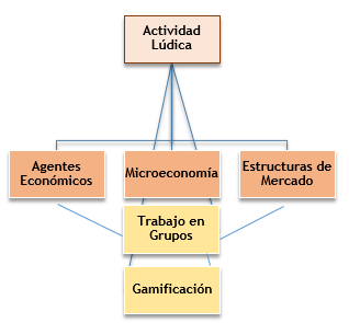 La tabla 1 muestra la relación entre las categorías microeconomía, actividad lúdica, agentes económicos, gamificación, estructuras de mercado y trabajo en grupos. A su vez, ofrece una síntesis descriptiva de cómo se establecen estas conexiones.